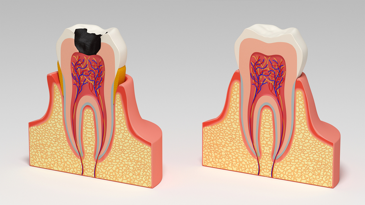 虫歯が重症化し、病巣が歯の神経(歯髄)まで達した場合、一般的には神経をとる治療が選択されます。しかし、神経を失った歯は栄養が行き届かなくなり、次第にもろくなっていきます。