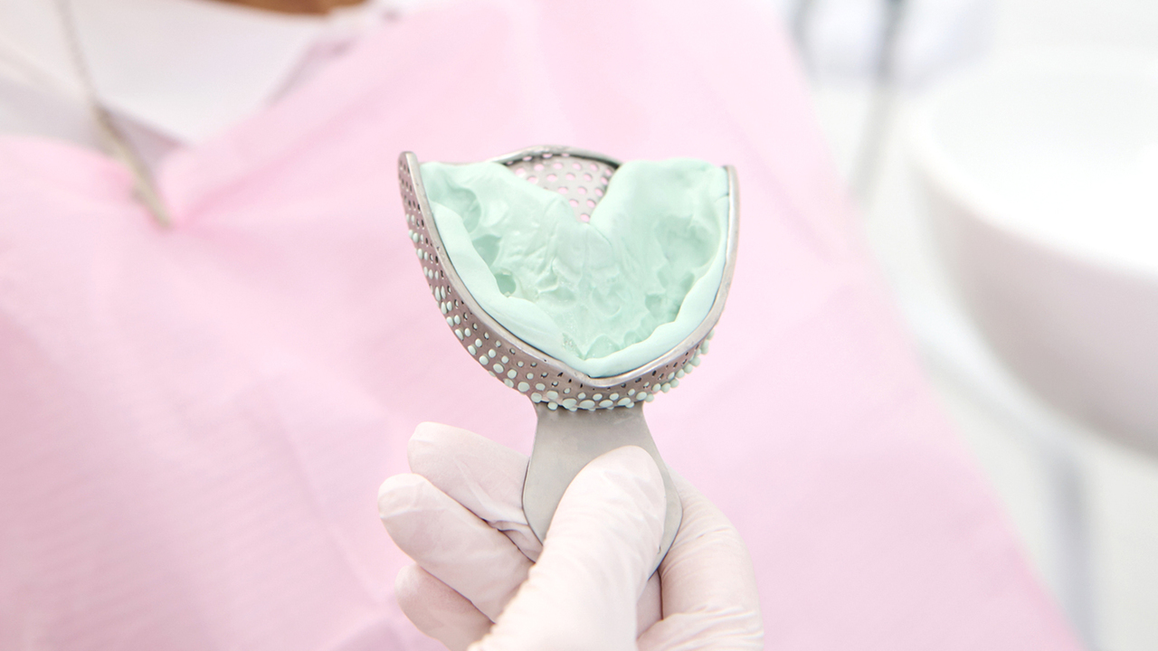 型どりには、シリコン製の材料を採用しています。通常使われる材料に比べて変形が少ないため、とった型の精度を保ちやすく、より正確な詰め物・被せ物の作製が可能です。