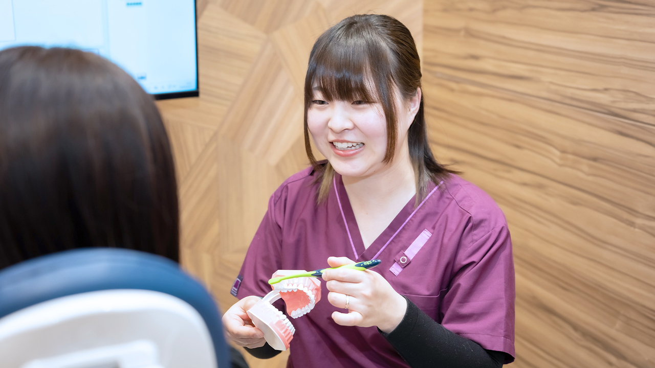 メインテナンスの際、お口のプロである歯科衛生士がプロフェッショナルなケアを行い、普段のお手入れでは行き届かない細かな部分まで丁寧にクリーニングを実施します。