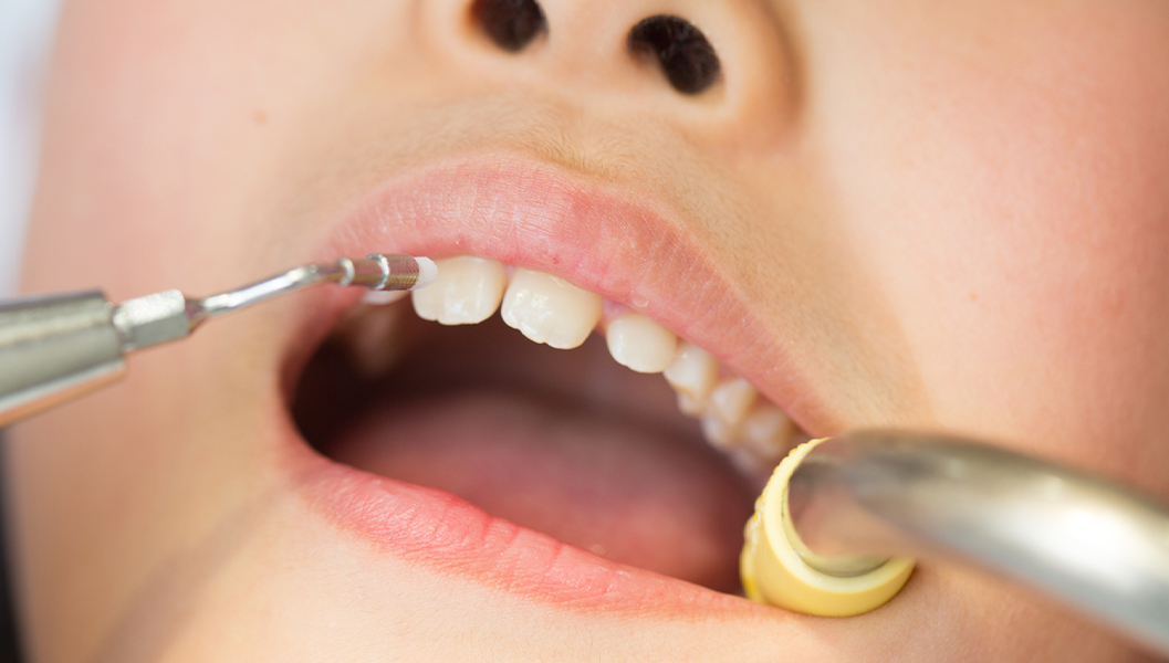 奥歯の溝を医療用のプラスチックで埋めて、汚れを溜まりにくくし虫歯のリスクを低減します。