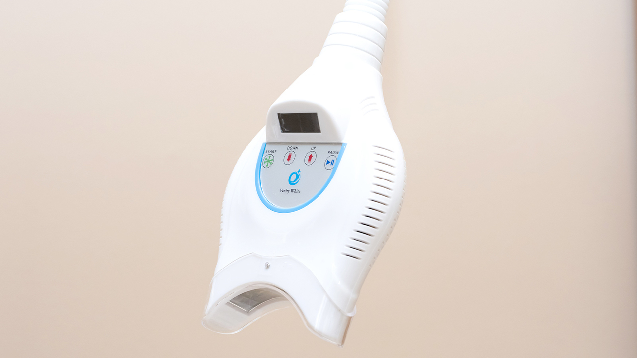歯科医院内で行うホワイトニングです。歯の表面に薬剤を塗り、光を照射して歯を白くします。